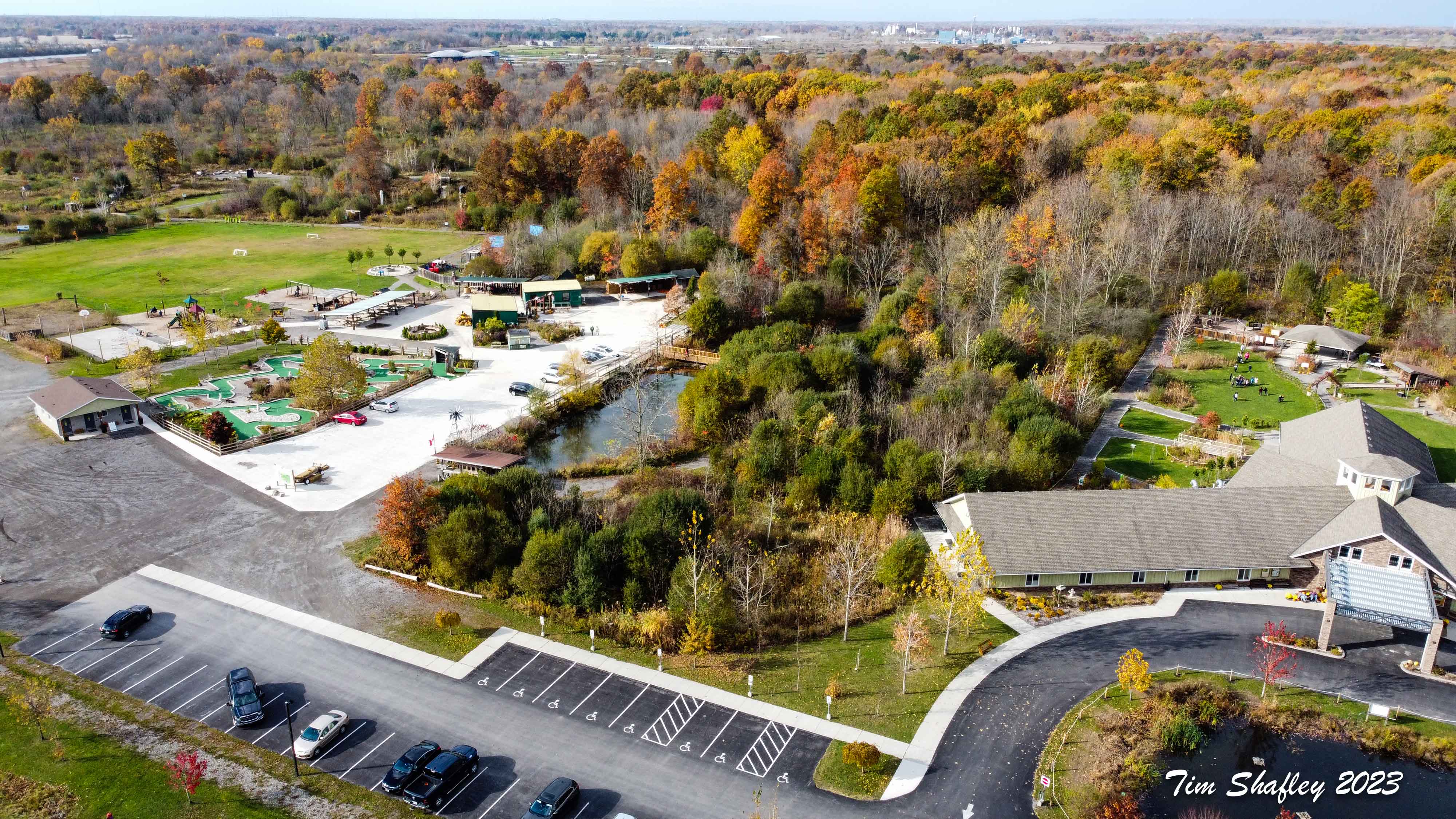 The property offers free parking and admission and includes 4km of wide, easy-access forest paths accessible for strollers and mobility aids. Visitors can also enjoy boardwalks, picnic pavilions (available for rent), a 9-hole mini-putt (seasonal, Friday-Sunday), an accessible tree-house, playgrounds, fish, frog and turtle ponds, adaptable fitness stations, and a 14,000 square foot Nature Centre equipped with interactive educational exhibits – all accessible.